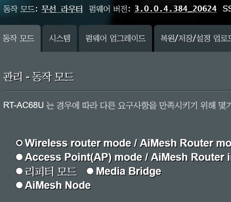 여기서 보너스.. 기존에 변신 68U는 AiMesh가 안된다는 설이 있었는데.. 위와 같이 찌꺼기를 날리면, 변신 68U에서도 AiMesh가 정상적으로 활성화가 됩니다. 당연히 Merlin Firmware에서는 AiMesh가 안되고 정식 펌을 쓰셔야 합니다.