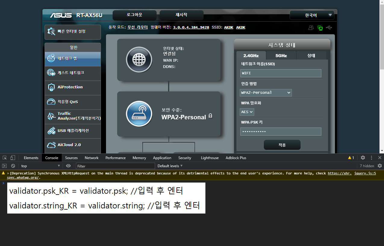 2020/06/11 최신 크롬에서 확인 해본결과 스크립트를 직접 수정하는것은 보안 이슈가 있었는지 수정이 안됩니다. 대신 F12로 개발자 도구를 열고 ‘Console’탭을 선택, 아래와같이 “validator.psk_KR = validator.psk” 입력 후 엔터(복붙해도되고 vali까지치면 자동완성 힌트가 뜹니다.) 그리고 “validator.string_KR = validator.string”입력 후 엔터를 누르면 우회가 가능합니다. 덕분에 크롬외에서도 동일한 방식으로 우회가 가능하고 더 쉬운 우회법을 찾았지만 매번 다시입력해야하는 약간의 번거로움이 있습니다. 또 안되면 제보주시면감사합니다.