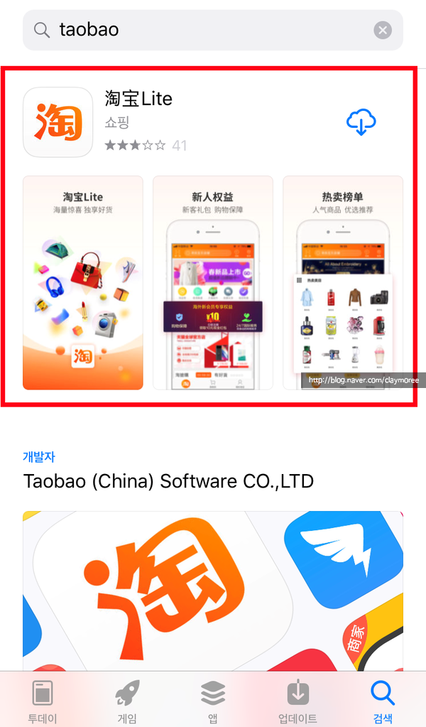 앱스토어에서 taobao 를 검색 후 다운로드