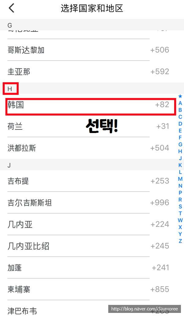 국가번호 선택 할 때에