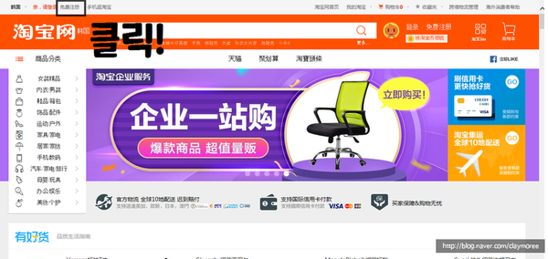 2. 상단의 免费注册 (무료회원가입) 클릭.