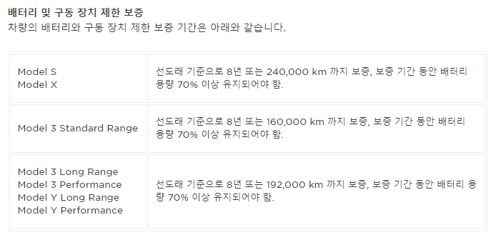 출처 : 테슬라 공식홈페이지(www.tesla.com/ko_KR/support/vehicle-warranty)