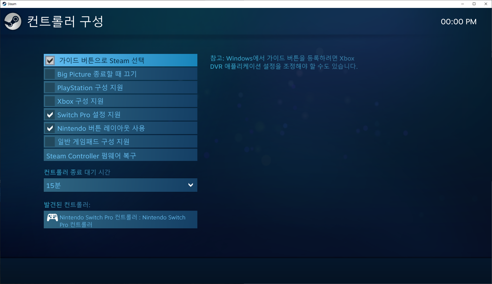 프로콘 윈도우 스팀 컨트롤러 셋팅