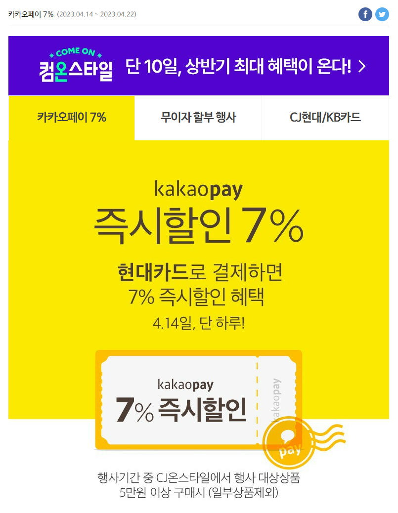 -> 카카오페이(현대카드) 7% 즉시 할인 + 택배비 포함
