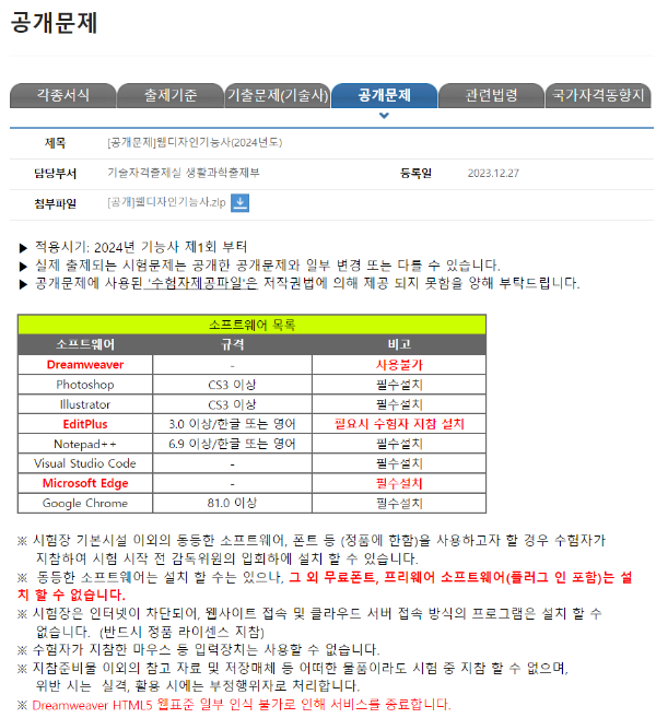 | [공개문제] 웹디자인기능사(2024년) | 바로가기 | Q-net > 자료실 > 공개문제 |