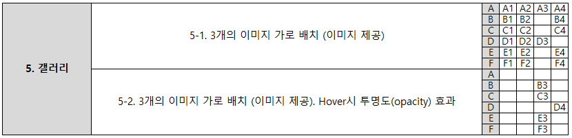 시험내용 : 화면설계 와이어프레임을 기준으로 퍼블리싱 작업