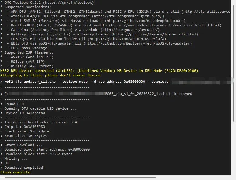 - 기존에 설치된 일반 QMK Toolbox는 작동하지 않을 가능성이 높으므로 사용하지 마세요.